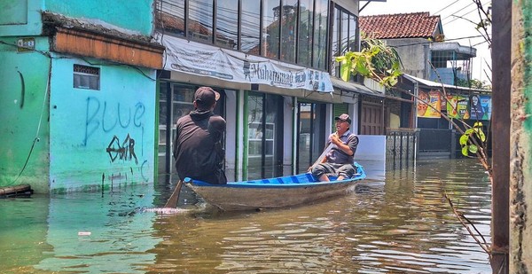 Banjir Rendam Bojongsoang, Warga Cijagra Andalkan Satu Perahu untuk Beraktivitas