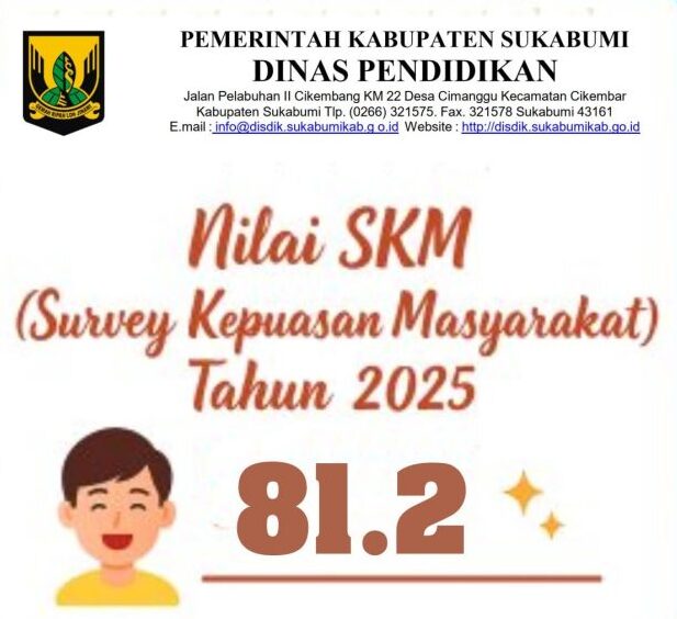 SUKABUMI – Dinas Pendidikan Kabupaten Sukabumi telah melaksanakan Survei Kepuasan Masyarakat (SKM) yang bertujuan untuk memperoleh gambaran mengenai mutu pelayanan yang diberikan kepada publik. Hasil survei ini sekaligus berfungsi sebagai dasar evaluasi bagi penyelenggara pelayanan.