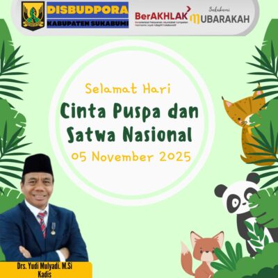 Sukabumi – Dalam rangka memperingati Hari Cinta Puspa dan Satwa Nasional yang jatuh pada 5 November 2025, Dinas Kebudayaan, Pemuda, dan Olahraga (Disbudpora) Kabupaten Sukabumi mengajak seluruh masyarakat, terutama generasi muda, untuk menumbuhkan kepedulian dan kecintaan terhadap alam serta keanekaragaman hayati Indonesia.