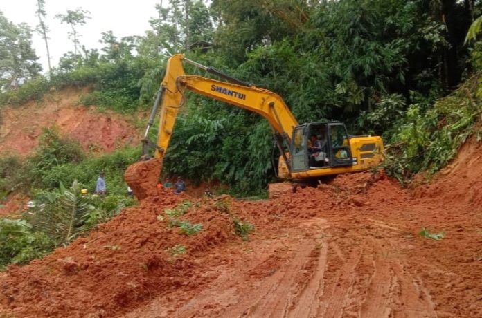 Sukabumi – Akibat diguyur hujan terus-menerus dengan intensitas cukup tinggi di wilayah selatan Sukabumi, akses jalan Pal Tiga–Tamanjaya tertutup material longsoran berupa tanah dan pohon tumbang, sehingga akses jalan sempat lumpuh.
