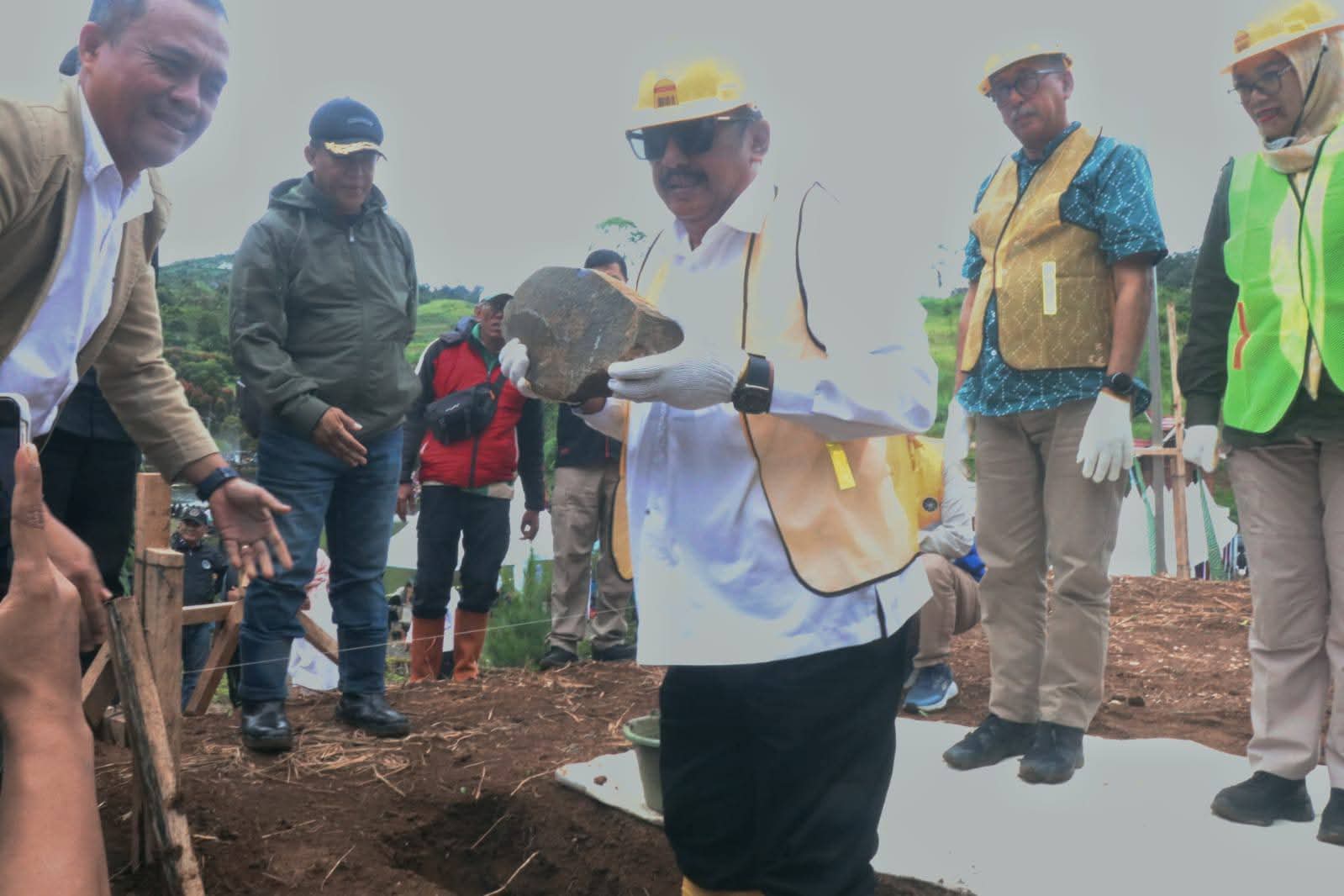 Sukabumi – Bupati Sukabumi H Asep Japar menghadiri peringatan Milad ke-8 Masjid Baiturrahman yang dirangkaikan dengan peletakan batu pertama pembangunan Puskesmas Pembantu (Pustu) Baiturrahman, di Kampung Cibogo, Desa Ciengang, Kecamatan Gegerbitung, Minggu (18/1/2026).
