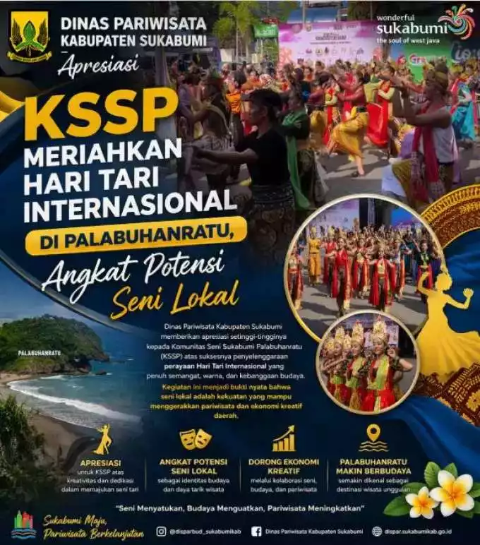 Kepala Dinas Pariwisata Kabupaten Sukabumi, Ali Iskandar, menyampaikan apresiasinya terhadap inisiatif KSSP dalam menyelenggarakan kegiatan tersebut. Menurutnya, momentum Hari Tari Internasional harus dimanfaatkan untuk memperkuat eksistensi seni budaya lokal di tengah arus modernisasi.